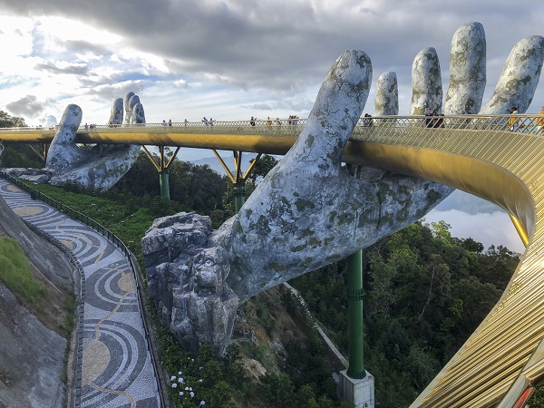 As a result of great creation and building technology, Golden Bridge - a 150 meter (490 feet) long pedestrian bridge offers a spectacular panoramic view of primitive forests, ocean and city of Da Nang.